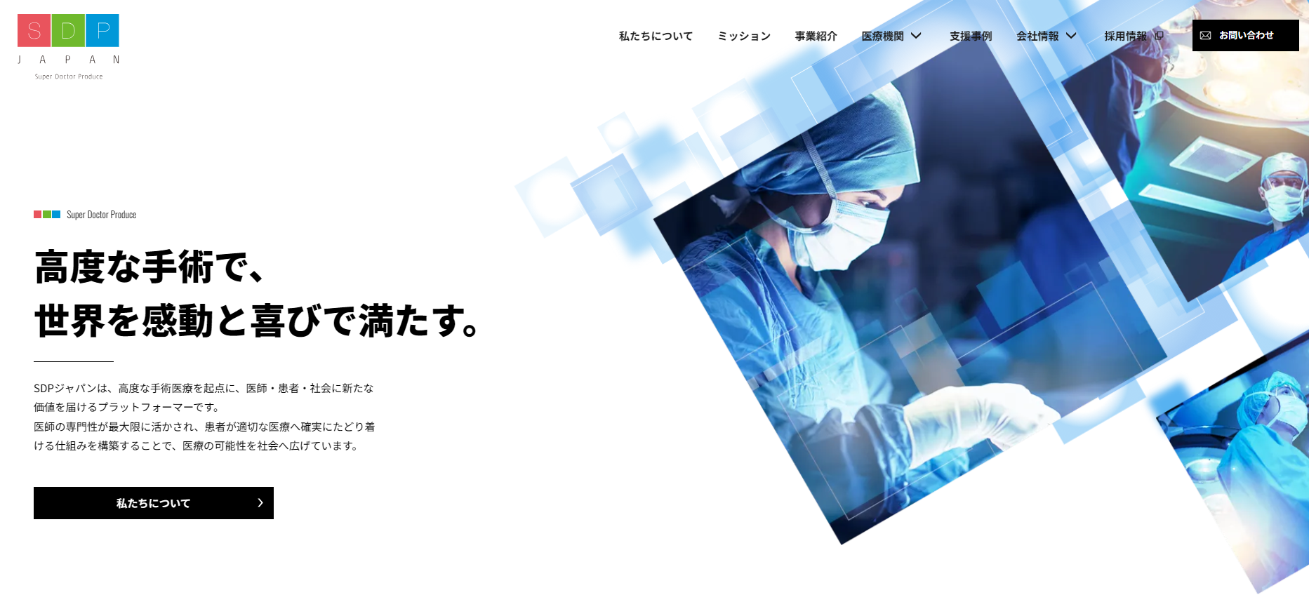 SDPジャパンは「高度な手術で、世界を感動と喜びで満たす」というミッションのもと、人工関節、脊椎や不整脈などの専門分野に特化した医療機関のプロデュースを行ってまいりました 。この度、当社の支援内容や目指すビジョンをステークホルダーの皆様により深く理解していただくため、デザインとコンテンツを一新いたしました。